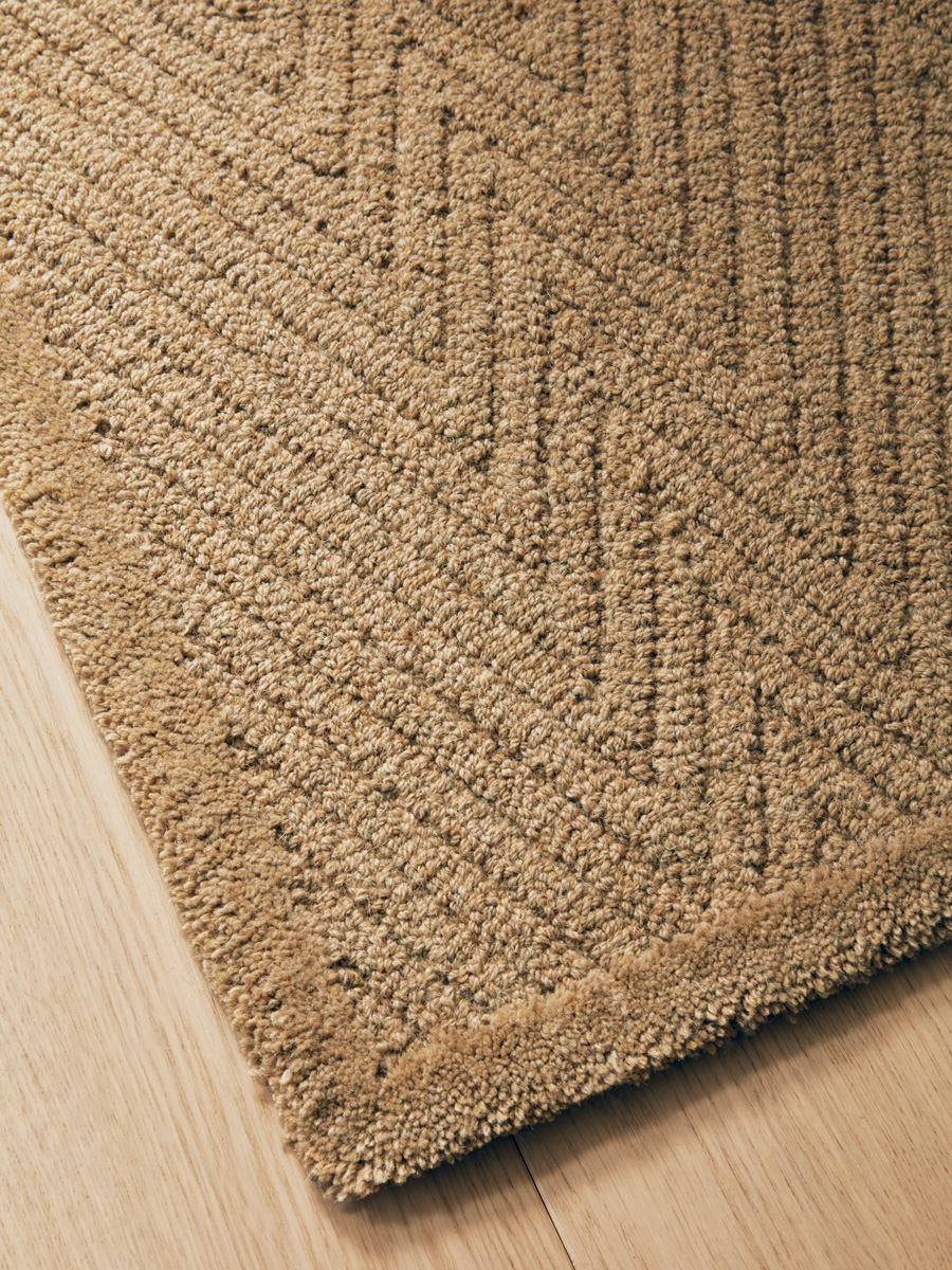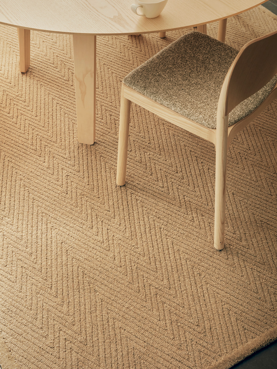 Knitted is a luxury hand tufted rug produced in a fishbone pattern with different levels created by a 3D technique.