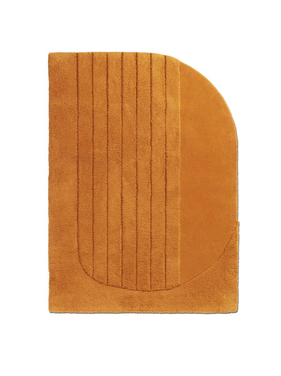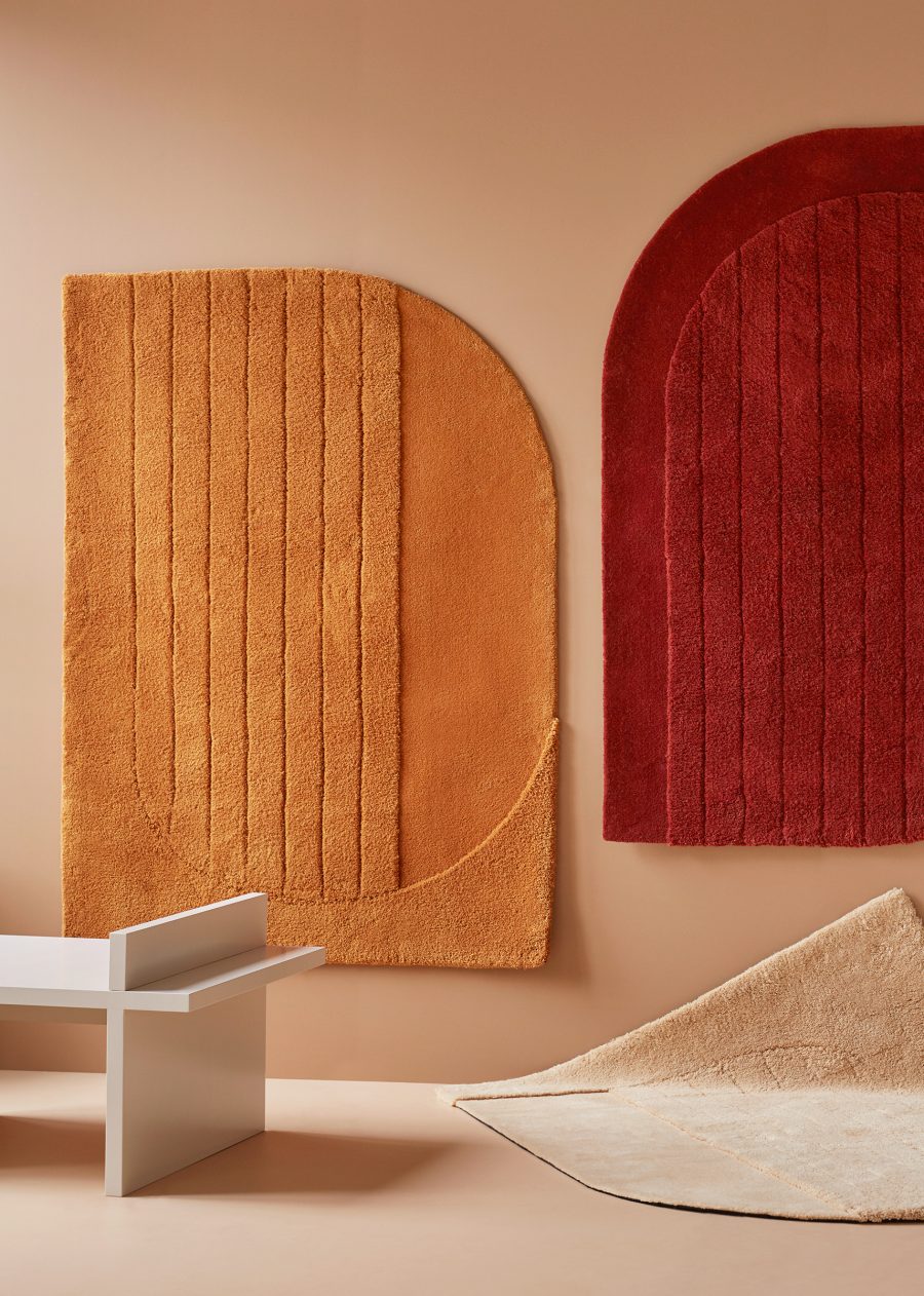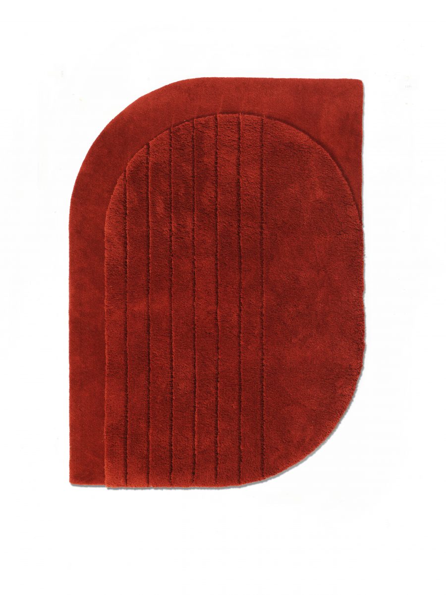 Note Design Studio has created an exclusive collection of rugs with bold expressions that each stand out as pieces of art and the combination of round edges and straight lines makes it an easy to place solitaire.