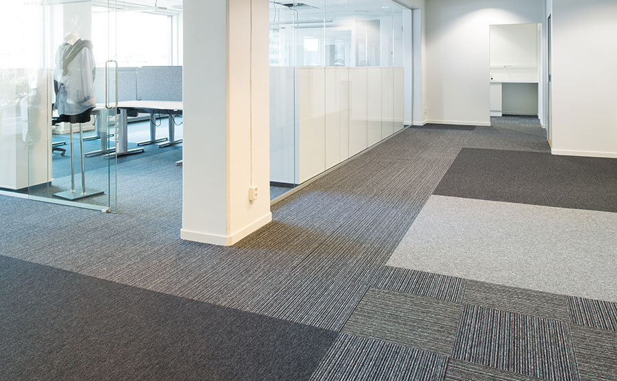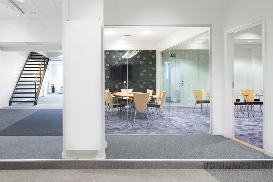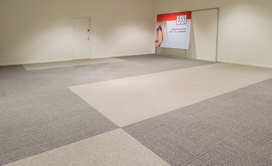 Vår textila platta Tivoli och mattan Frame valdes till kontoret hos 3PR i Solna. Fem olika färger av Tivoli lades i olika mönster i kontoret och utställningen och till mötesrummen valdes mattan Frame i en färg. Textilplattan användes även i trappan.