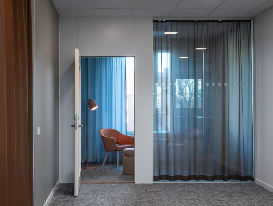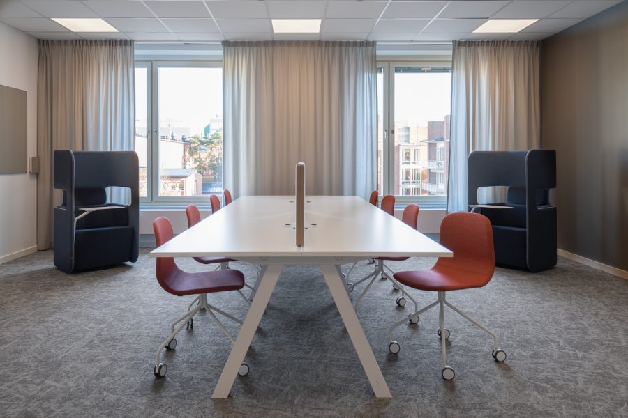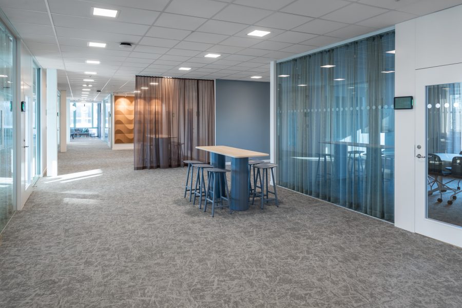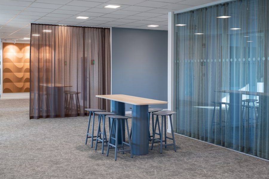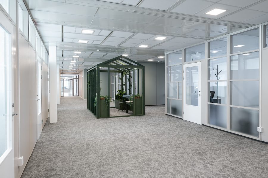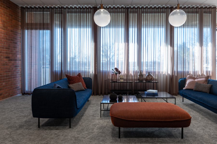 Vi är stolta leverantörer av textila plattor som installerats på en 1700 m2 stor yta. Den textila plattan som vi har levererat är Osaka i färgen 22802 Sesame. Plattorna är schacklagda i detta projekt, men inte en skarv syns.