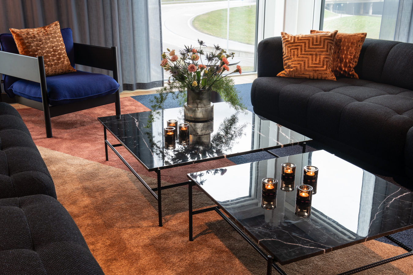 Vi har levererat mattor till Daikins kontor. Inredningsarkitekten valde att rita in vår textila platta Haven Honest och en svetsad Lux/Romance.