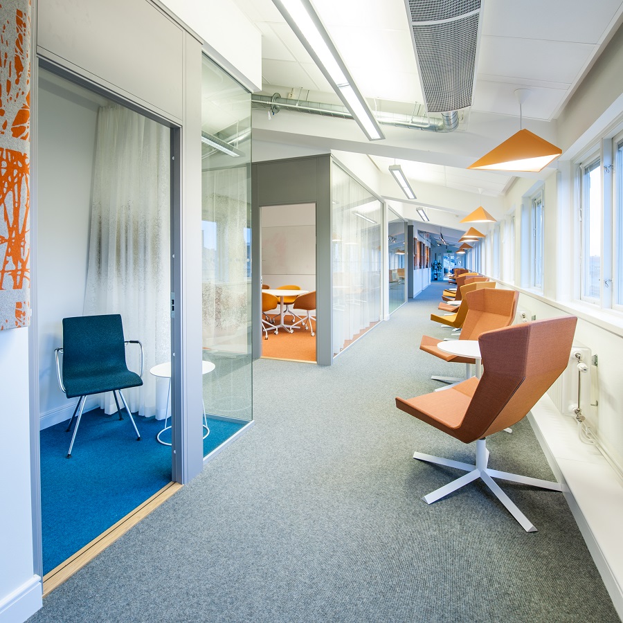 På Elektas kontor valde inredningsarkitekten vår matta Tretford som bland annat ligger i gångstråken samt i konferens- och mindre samtalsrum.