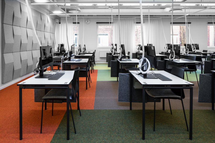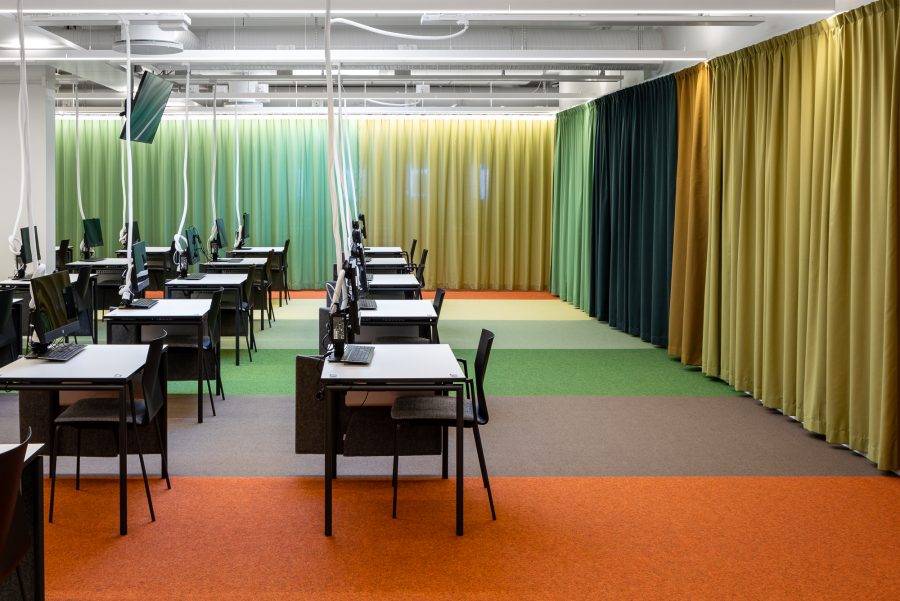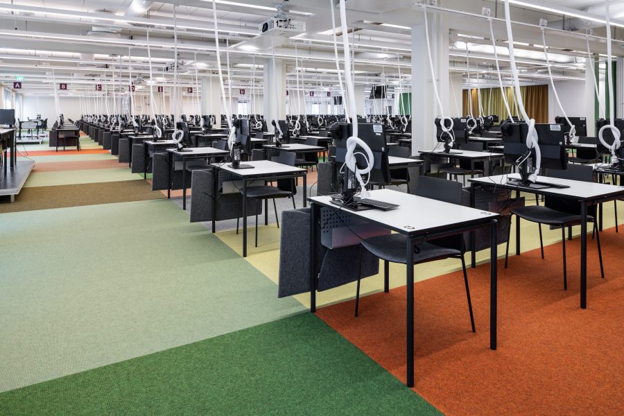På entréplan i Berzeliuslaboratoriet ligger denna skrivsal med plats för 240 deltagare. Link Arkitektur har gjort ett fint jobb med inredningen och vi har fått äran att leverera vår matta Tretford till salen.