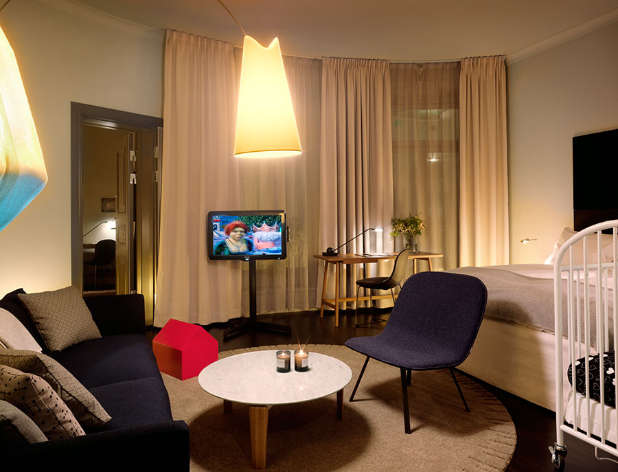 Strip ligger som avpassade mattor i hotellrum, mötesrum och vissa loungeytor.