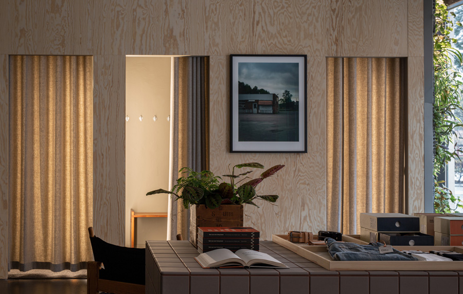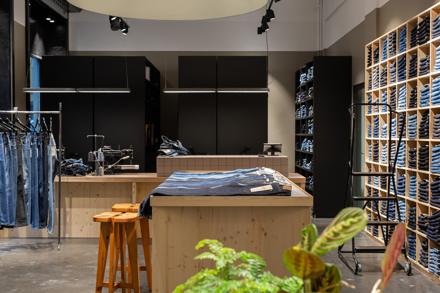 Vi är en del av Nudie Jeans butik på Skånegatan i Stockholm.