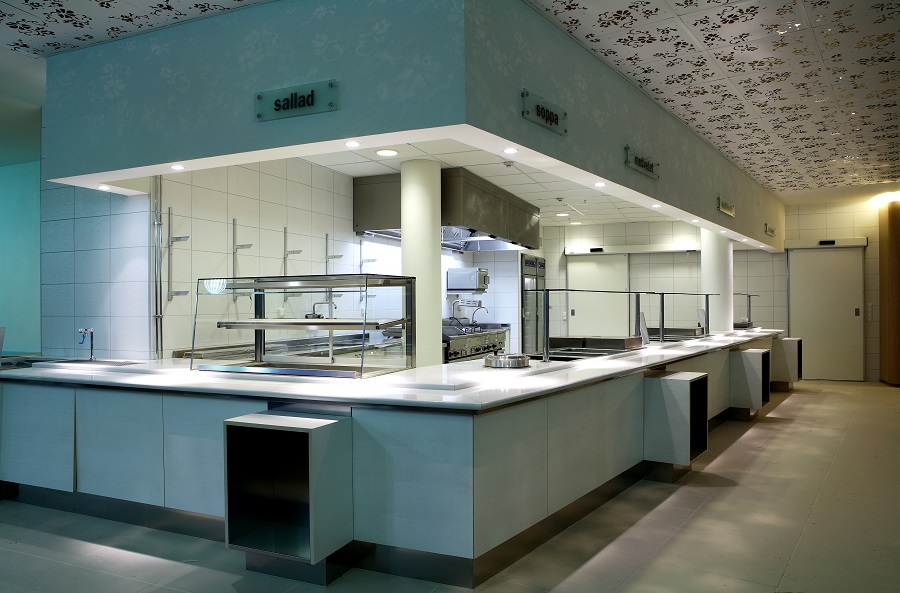 Ogeborgs Quartzsten Luce Pura ligger som bänkskiva i personalrestaurangen och i receptionen hos Pfizers HK i Silverdal i Solna.