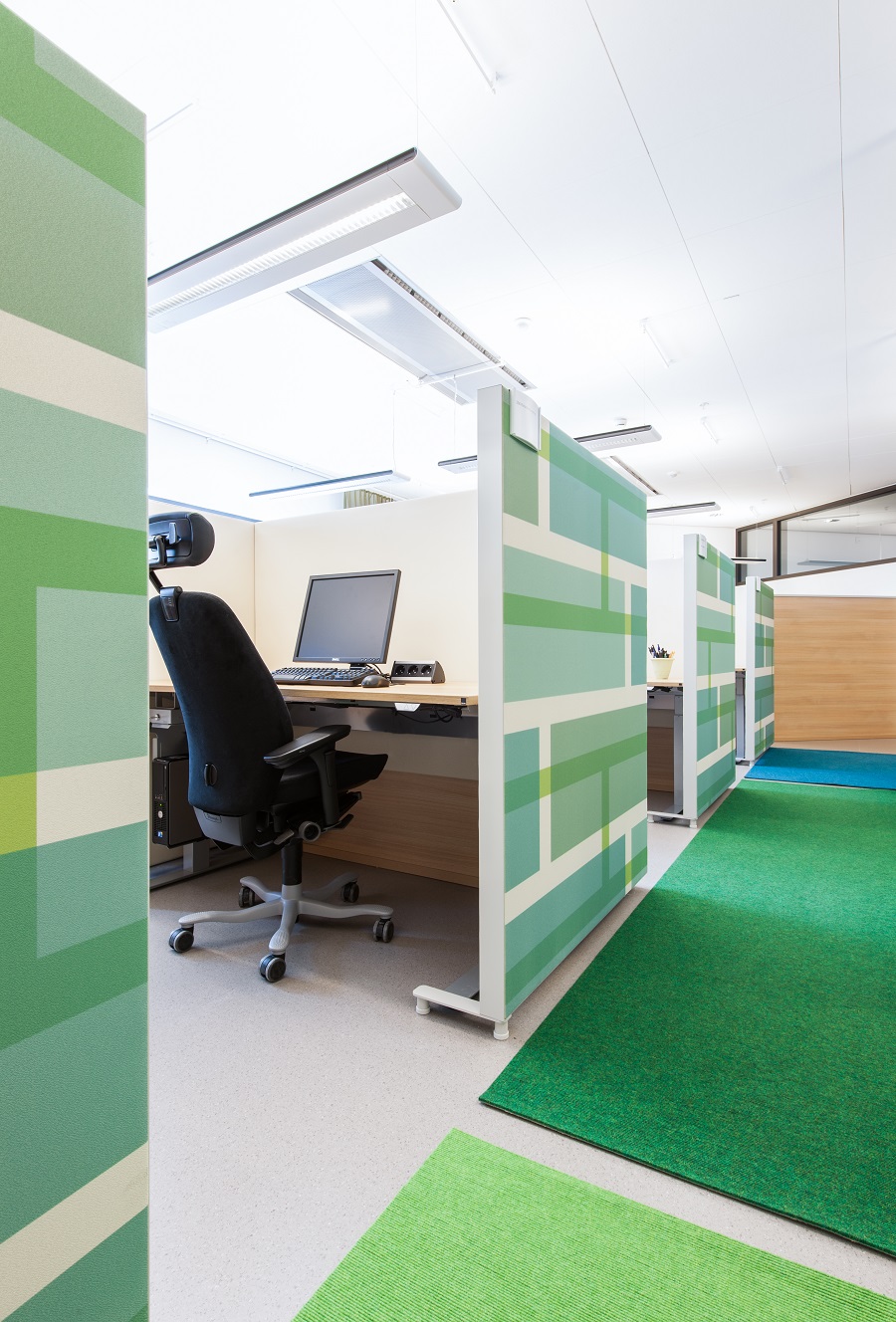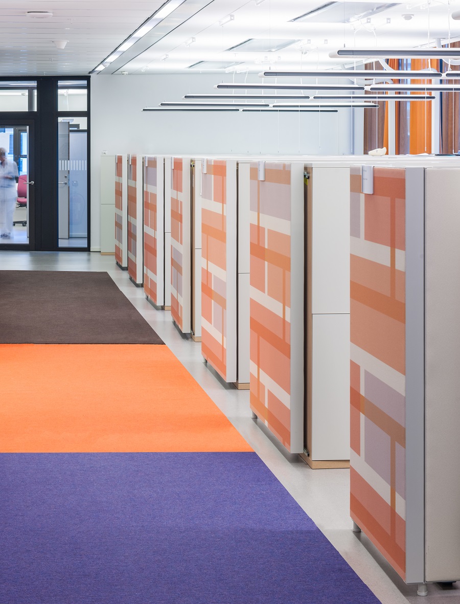 På Psykiatrins Hus valde inredningsarkitekten att rita in randiga gångmattor i kvaliteten Tretford.