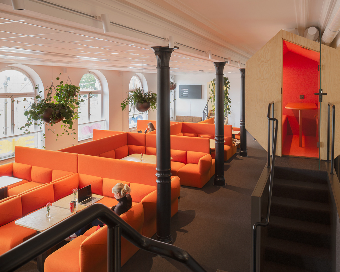 När Storytel flyttade in i sina nya lokaler på Riddarholmen skapade HOW Arkitekter en miljö där kreativitet och koncentration kan mötas. Vi bidrog till inredningen med våra mattor Format och Tretford, som skapar balans mellan estetik, akustik och komfort.