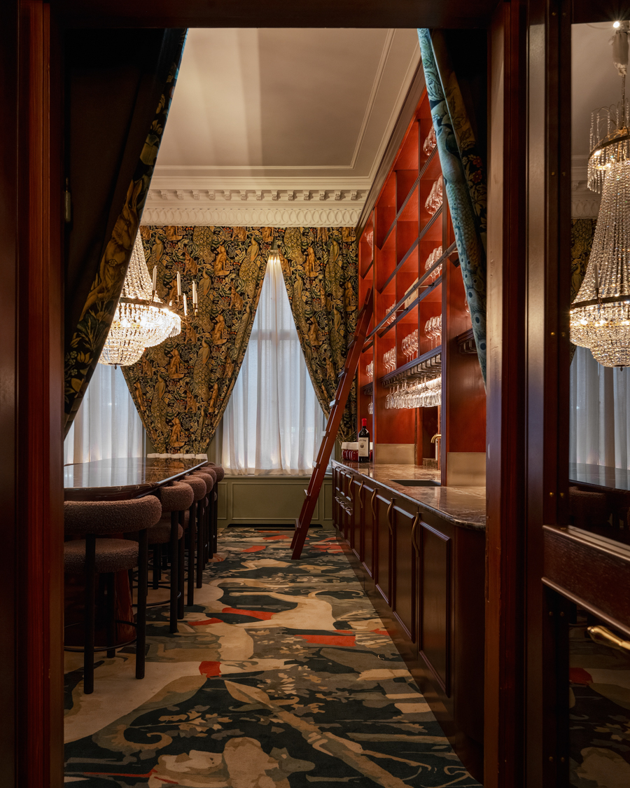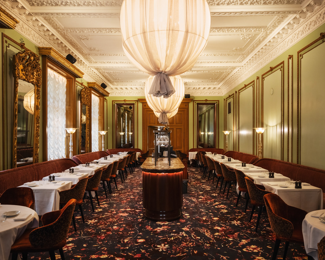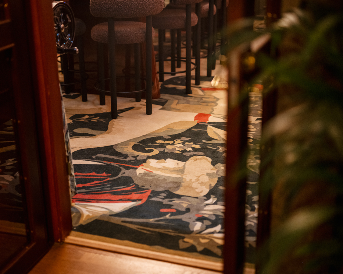 Utmaningen i detta projekt har varit att skapa en inredning som sticker ut hakan utan att överhuvudtaget röra ytskikten. Textilierna har varit en nyckel där. Vi har tagit fram allt från specialdesignade lyxiga heltäckningsmattor med mönster inspirerat av barockmålningar och botanik, till en stiliserad nytolkning av en flamländsk 1400-talsgobeläng till vinrummet, berättar Fredrik Hansson, kreativt ansvarig på OKIDOKI. Målet var en tidlös restaurangupplevelse som både speglar palatsets historia och tillför något nytt till Göteborgs restaurangscen.