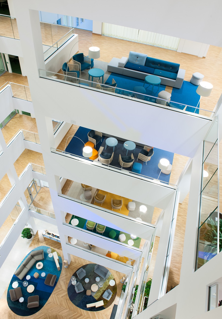 På Vattenfalls kontor har Tengbom valt att rita in vår matta Tretford, där varje avpassad matta är svetsad i olika färger från kollektionen.