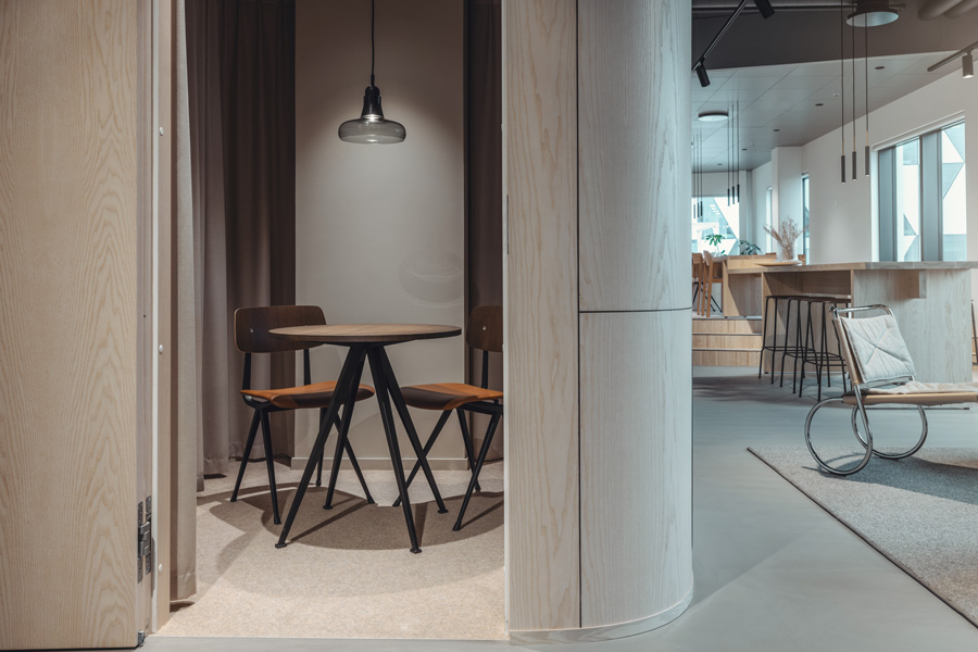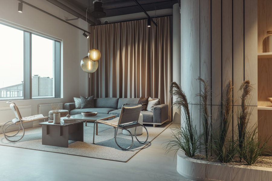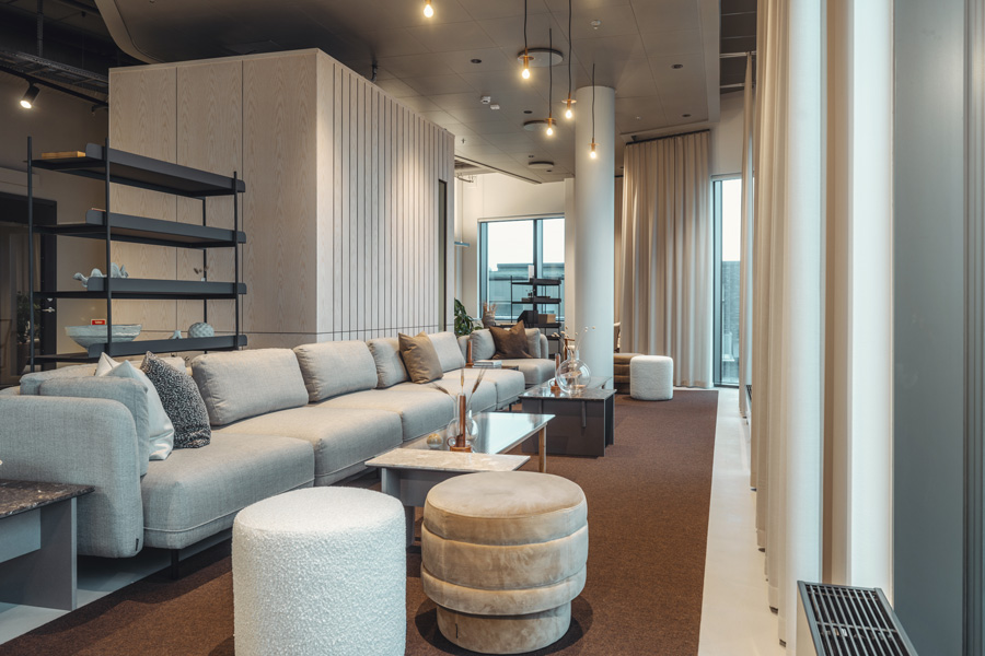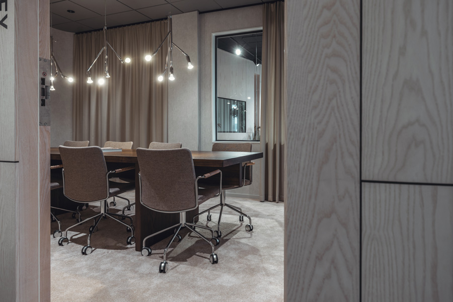 På våning fem i World Trade Center i Helsingborg huserar deras nya Business Center som är ett modernt och elegant kontorshotell. Ideas har gjort ett fantastiskt jobb med inredningen och skapat kreativa design- och funktionslösningar. Vi har levererat både avpassade och heltäckande mattor samt prytt en vägg med en av våra handtuftade mattor gjord i viskos och ull.